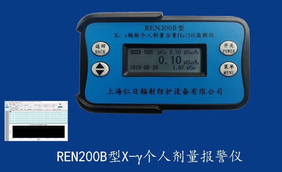 REN200A型X、γ輻射個(gè)人劑量當(dāng)量HP(10)監(jiān)測(cè)儀(簡(jiǎn)稱:個(gè)人劑量報(bào)警儀)內(nèi)置高靈敏度蓋格計(jì)數(shù)管為探測(cè)器,主要用來(lái)監(jiān)測(cè)各種放射性工作場(chǎng)所的X、γ以及硬β射線的輻射,具有響應(yīng)快,測(cè)量范圍寬的特點(diǎn)。能顯示工作場(chǎng)所的劑量當(dāng)量率和累積劑量,更換電池時(shí),日期及累積數(shù)據(jù)能永久保存。可選配RenRiPersonal個(gè)人劑量管理軟件,該軟件可存儲(chǔ)多個(gè)人的歷史數(shù)據(jù),能記錄日累積、月累積、年累積、輻照時(shí)長(zhǎng)、計(jì)算平均劑量率、扣除或不扣除本底輻射,且以文字和圖譜的方式展現(xiàn)數(shù)據(jù)。廣泛應(yīng)用于核電站、加速器、鋼鐵、化工、同位素應(yīng)用、工業(yè)X、γ無(wú)損探傷、放射醫(yī)療、鈷源治療、γ輻照、放射性實(shí)驗(yàn)室、核設(shè)施周?chē)h(huán)境監(jiān)測(cè)等領(lǐng)域中的工作人員進(jìn)行個(gè)人安全